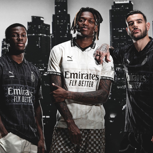 Thương hiệu thể thao toàn cầu PUMA cùng với AC Milan và nhà sáng tạo thời trang dạo phố PLEASURES của Los Angeles đã tiết lộ bộ quần áo bóng đá thứ tư của AC Milan mùa giải 23/24. Bộ sản phẩm mới có hai điểm nhấn là sự kết hợp giữa ảnh hưởng của phong cách punk, metal và grunge của thương hiệu thời trang dạo phố LA với vẻ đẹp phức tạp của kiến trúc gothic của Milan.