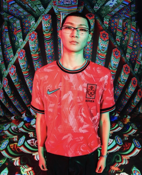 Họa tiết trên áo sân nhà được lấy cảm hứng từ nét kiến trúc Dancheong (các hình vẽ/hoa văn được thể hiện bằng nhiều màu sắc trên tường, cột, mái vòm của các cung điện, chùa chiền cổ) và Taegeuk (Thái Cực) trên trung tâm lá Quốc kỳ Đại Hàn Dân Quốc.